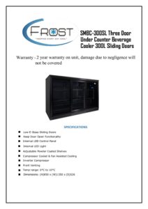 SMBC-300SL Three Door Under Counter Beverage Cooler 300L Sliding Doors
